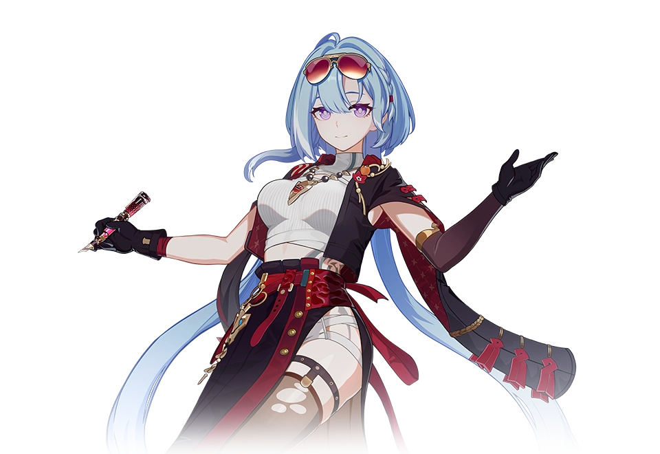 This design spotlights her elegant and mature nature. She is confident and capable as she dons this black suit jacket. Her white shirt and the chain at her waist give her a touch of femininity. Those of you familiar with comics will know that female characters with this image tend to be brilliant strategists. They can easily claim victory without setting foot on the battlefield. As a comic creator, this master of depiction believes this to be true as well.