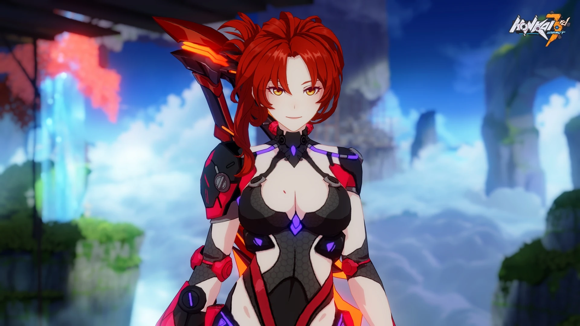 The Valkyrie in red armor wields a giant, heavy sword. Like a red mist, she sweeps across the battlefield.